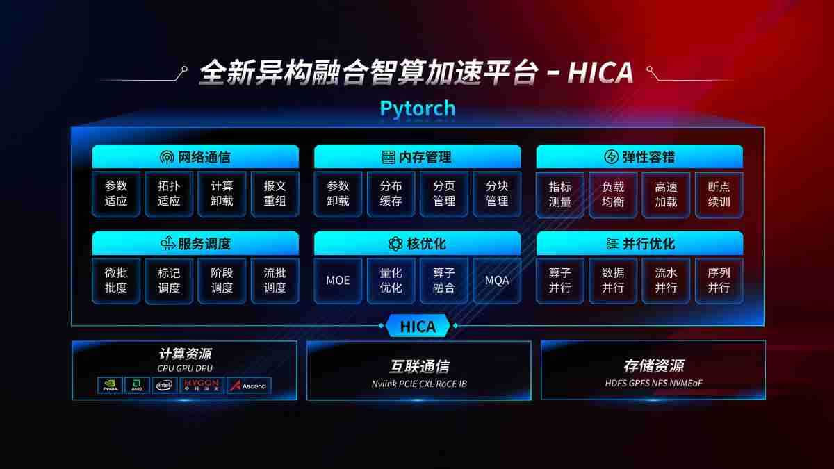 通过自研的服务层、、中间适配层、、、以及调度编排算法,,,采用数据并行、、、模型并行等多种并行方式,,,,把并行计算任务进行有效的分解,,,使其分别由相应的软件栈和算力资源来承接。。。当GPU资源变化,,,HICA可以实时动态调度计算子任务并调整模型拓扑和架构,,,,以充分聚合各种算力资源。。。。